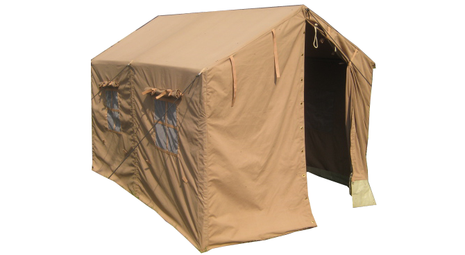 Tent: 340 GSM (+/-5%) 100% Cotton Canvas, Water & ROT Resistant Fabric in Olive Green, Khaki or any color Option A: Optional Inner Fold made of 100% Cotton 180 GSM Dyed Fabric Option B: Optional Fire Retardant Finish in Tent Fabric Ground Sheet & Mud Flap: 180 GSM (+/-5%) PE Optional: Ground Sheet can be replaced with PVC Coated Fabric 400–500 GSM on both sides |